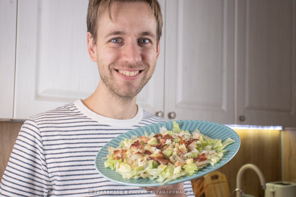 Совет: готовьте бекона с запасом. У него есть забавное свойство таять на кухне ещё до того, как попадёт в салат.